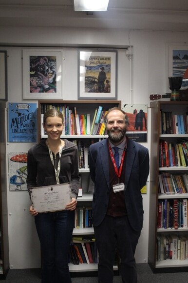 Charles Farris, representing the trust, came into Jane Austen College to present the award in September to Lola, congratulating her on her poem, and said: